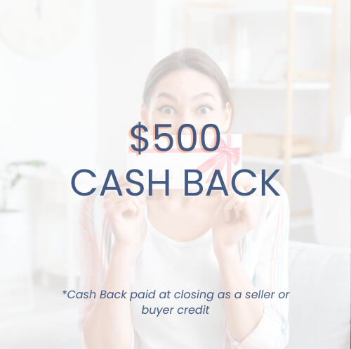 I love to extend a gift to my clients, so as a THANK YOU for using me as your Real Estate Agent whether it be to BUY or SELL your property, I provide you $500 cash back at the closing table!!
